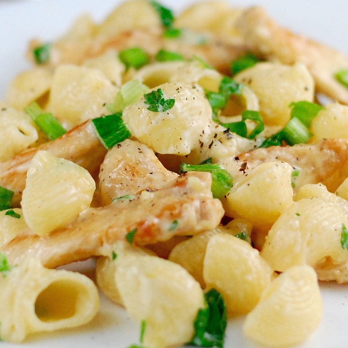 Shell Pasta tossed in a creamy Chicken & Broccoli Stew.