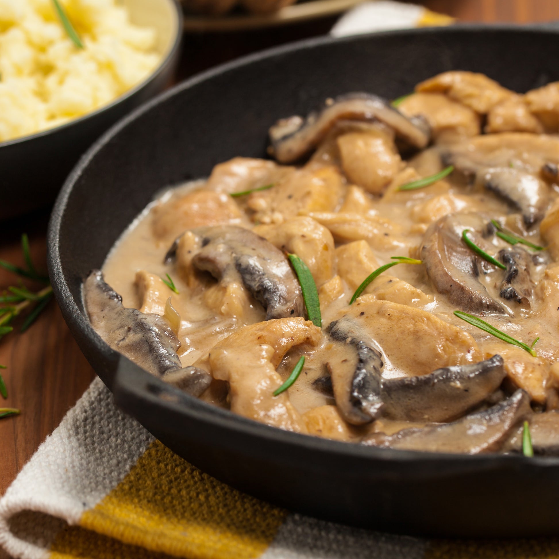 Free-range Chicken with a sauté of mixed Mushrooms in a creamy Spinach & Garlic Sauce.